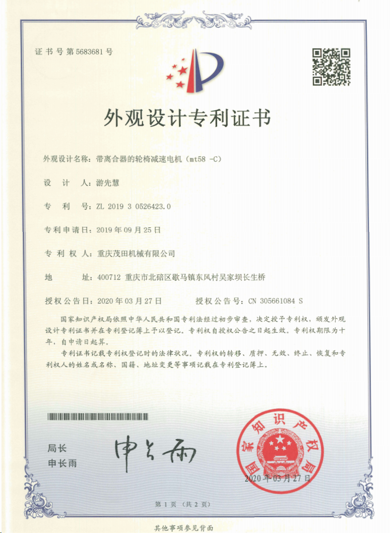 重慶茂田機械有限公司是國家級小巨人企業(yè)、國家高新技術(shù)企業(yè)、重慶市專精特新企業(yè)、重慶市知識產(chǎn)權(quán)優(yōu)勢企業(yè),致力于現(xiàn)代化山地農(nóng)業(yè)機械、各類非標減速電機及其控制系統(tǒng)的研發(fā)、生產(chǎn)、銷售。擁有重慶市市級研發(fā)平臺1個 目前研發(fā)、生產(chǎn)、銷售產(chǎn)品廣泛應(yīng)用于農(nóng)業(yè)機械、醫(yī)療康復設(shè)備、交通代步工具、智能搬運設(shè)備、以及機器人動力系統(tǒng)等領(lǐng)域。我們的產(chǎn)品具有完整的自主知識產(chǎn)權(quán),擁有多項專利技術(shù)及“重慶